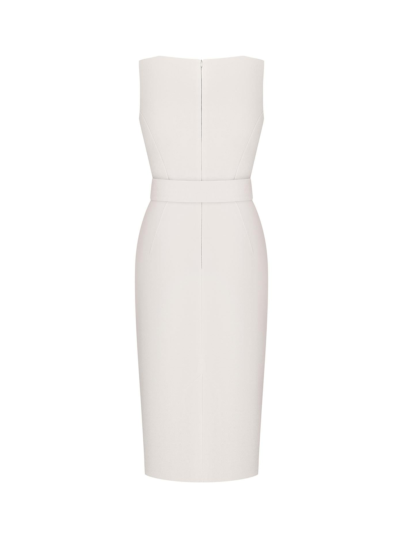 - Features: boat neck collar. Waistline darts model and narrow the silhouette