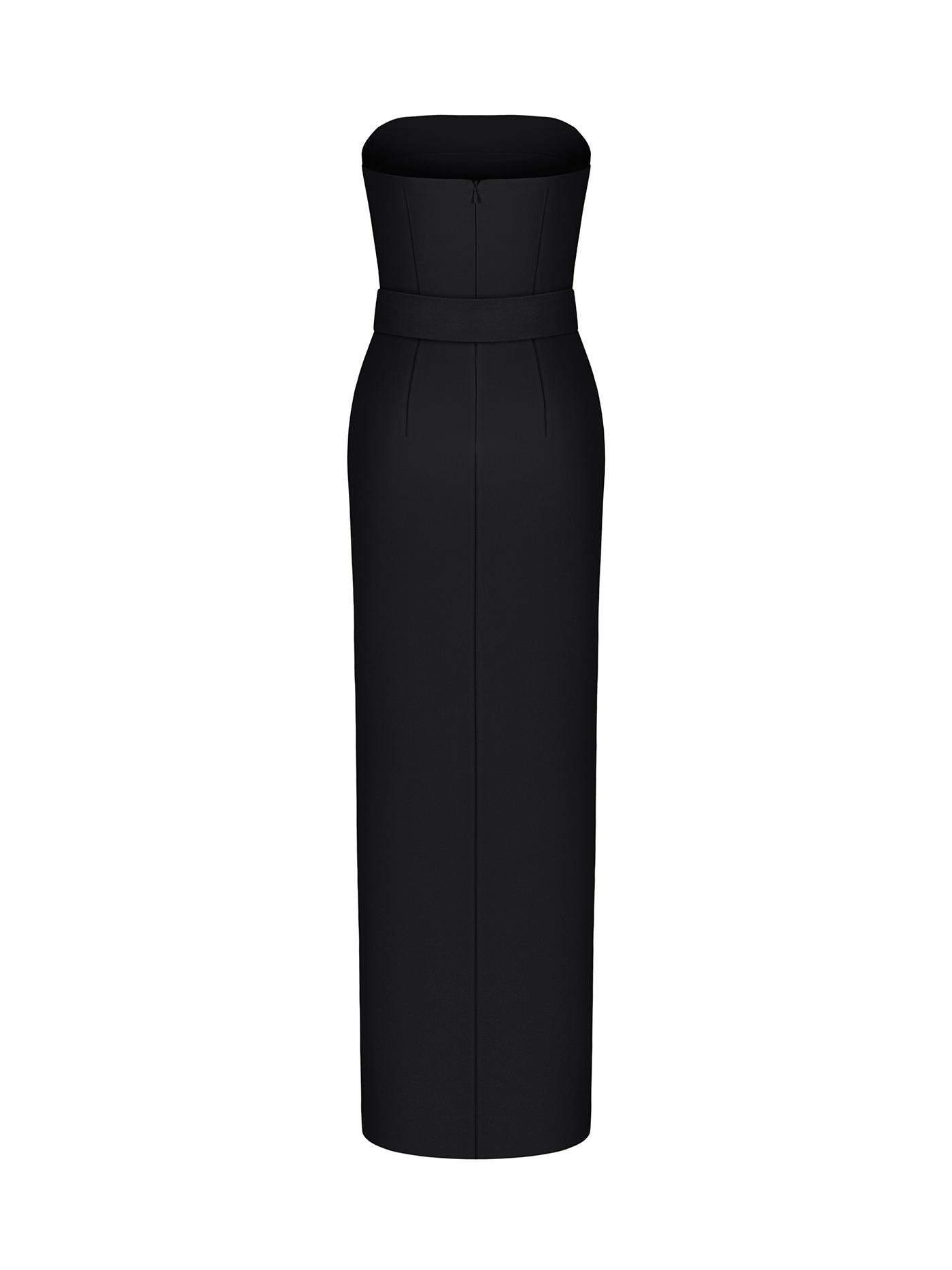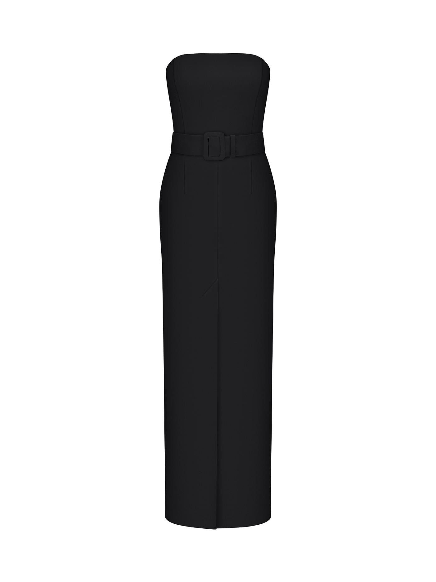 The black "Elegance" evening bustier dress will become the pearl of your wardrobe. The classic column silhouette and exposed shoulder area emphasize the graceful curve of the neck and delicate collarbones.